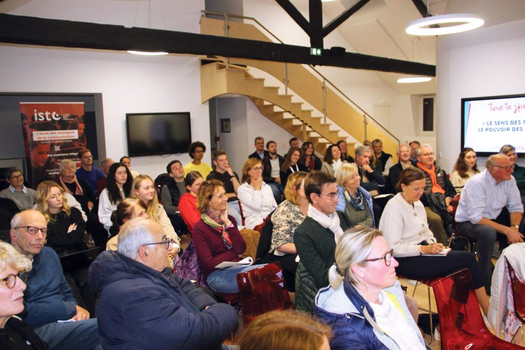 Cet appel à l’authenticité est resté marqué chez les différents intervenants lorsqu’il s’est agi de considérer les mots comme véhicules de la pensée. « Si je devais conseiller les étudiants de l’ISTC en la matière, lance Betty Rygielski, je leur dirais, soyez vous-même pour convaincre, allez-y avec les tripes. » « Et prenez surtout du plaisir.» a renchéri Hervé Leroy, tandis que Dorothée Catoen les invitait, après avoir réfléchi à la portée des mots sur les émotions du receveur, à garder un enthousiasme constant lorsqu’ils sont prononcés.