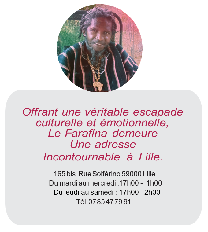 Le Farafina, bien plus qu’un simple bar lillois, est depuis un quart de siècle un lieu chargé d’histoire où le reggae et les rythmes africains créent une ambiance unique. En plein cœur de Lille, laissez­ vous emporter par l’esprit afro-caribéen de cet espace.